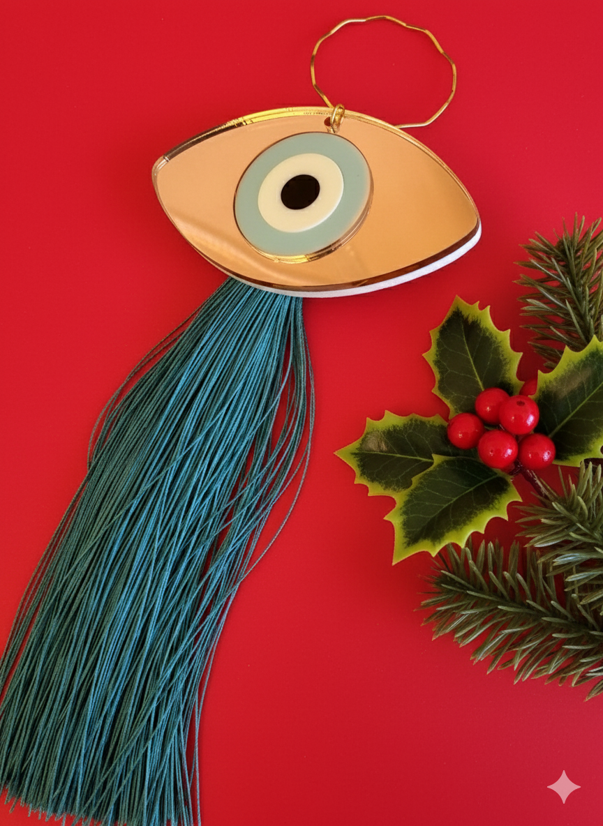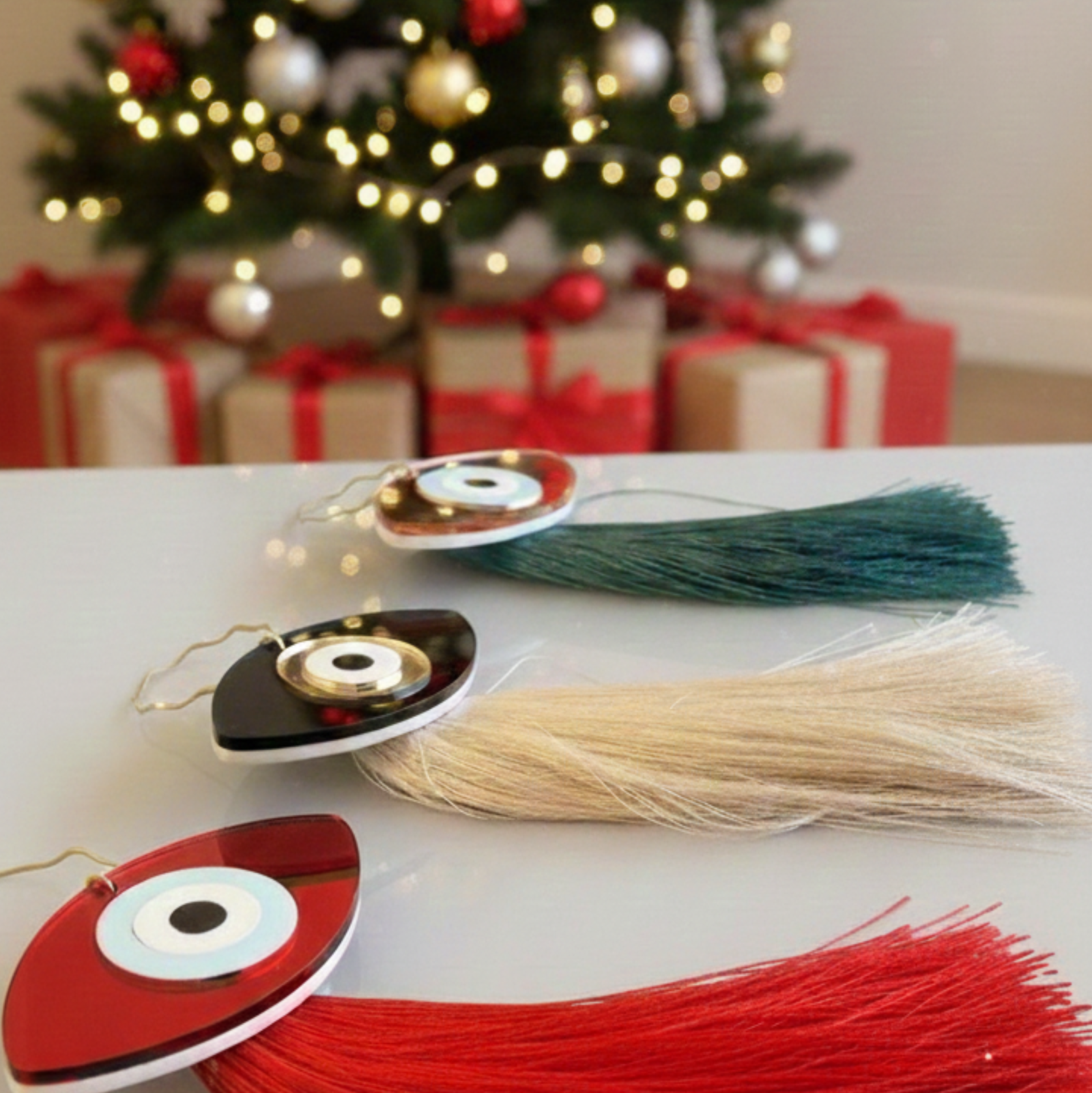 Evil Eye Hanging Festive Charm with Tassel – Holiday Gift