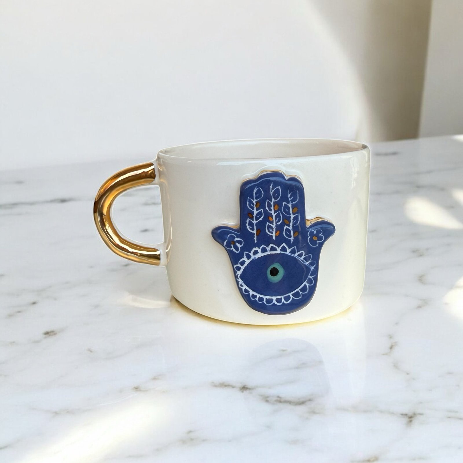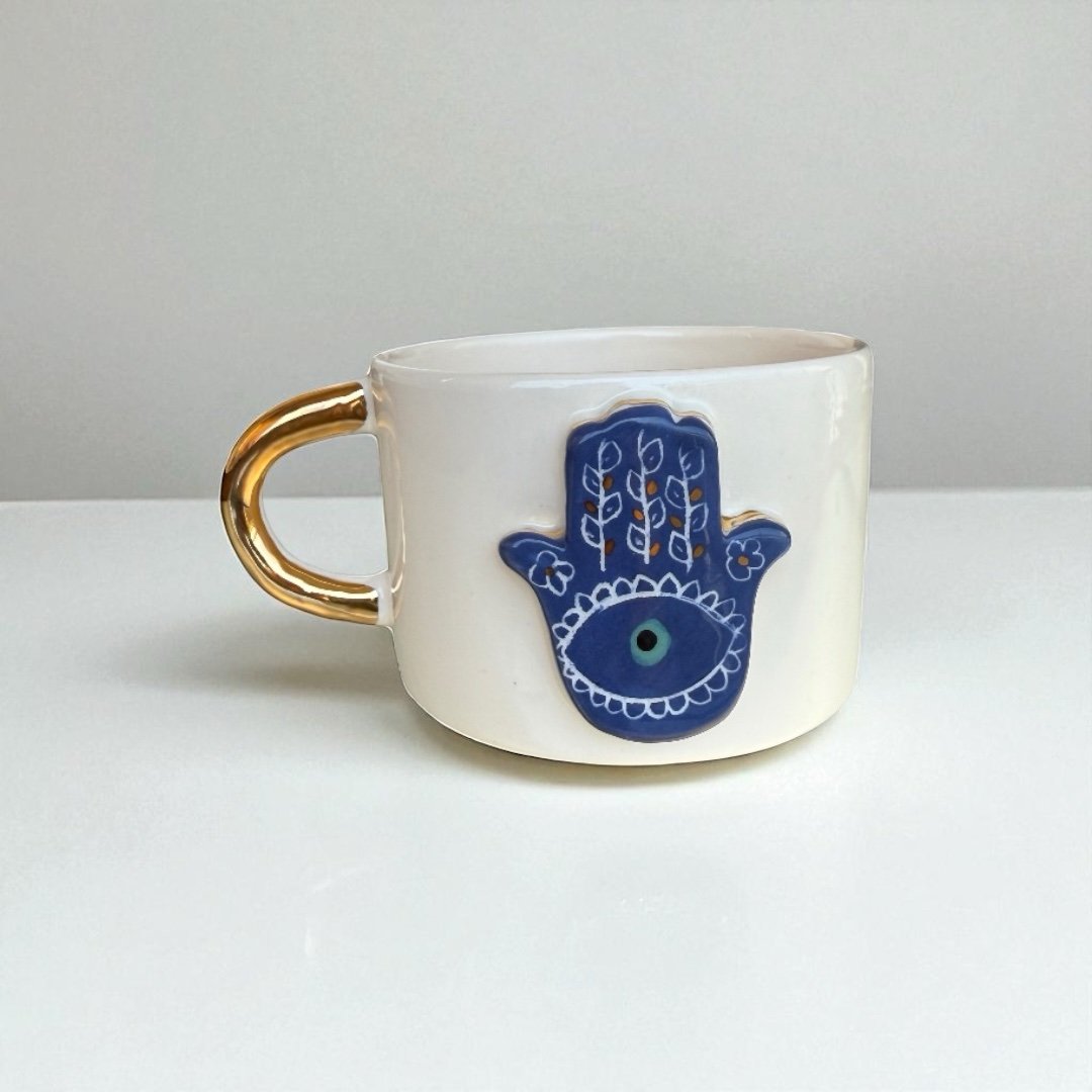 Home LUXURY GIFTING Home Handmade 3D Evil Eye Ceramic Mug / Tea Cup – The Hamsa Aura