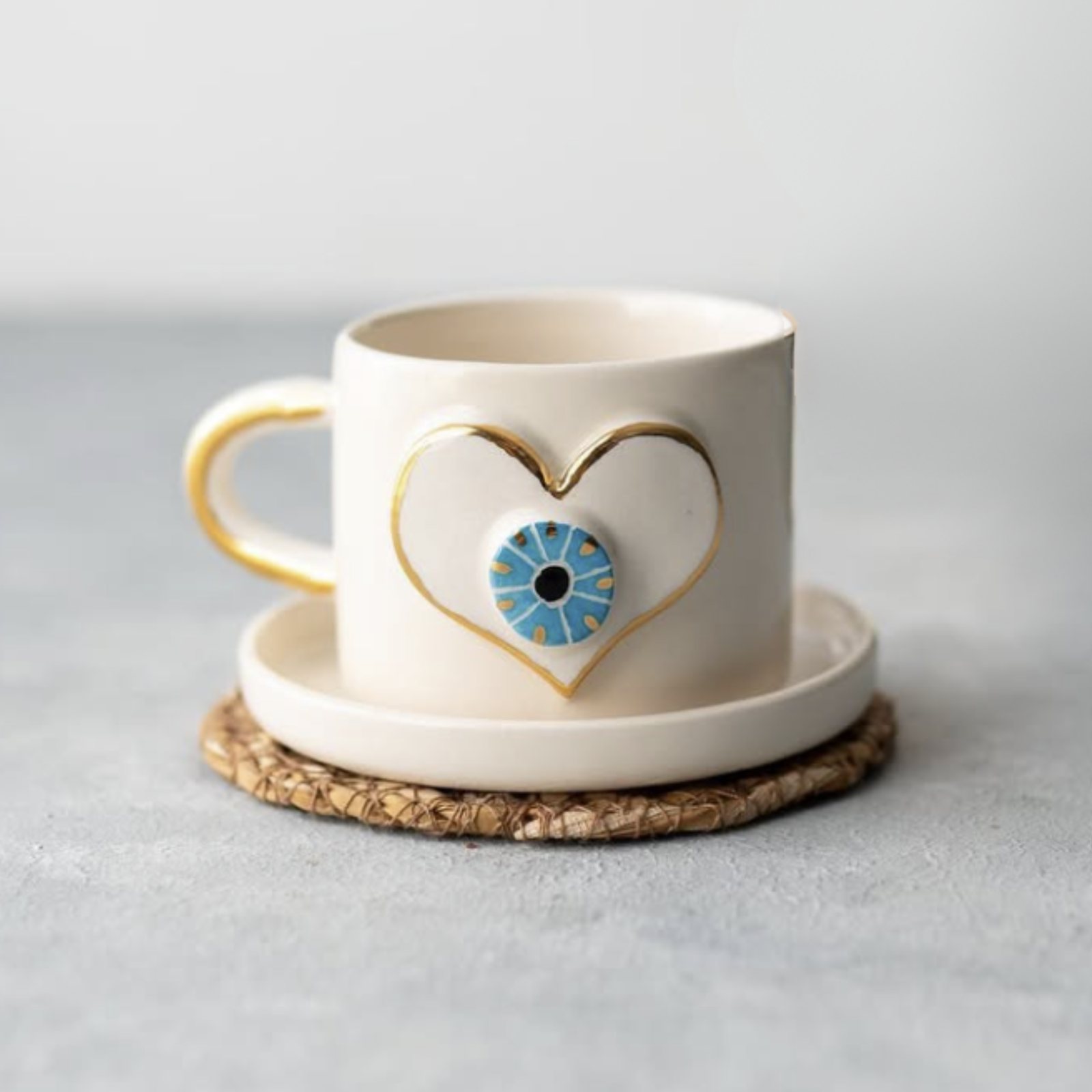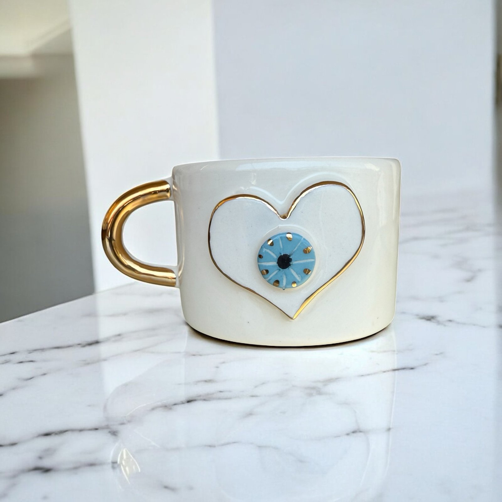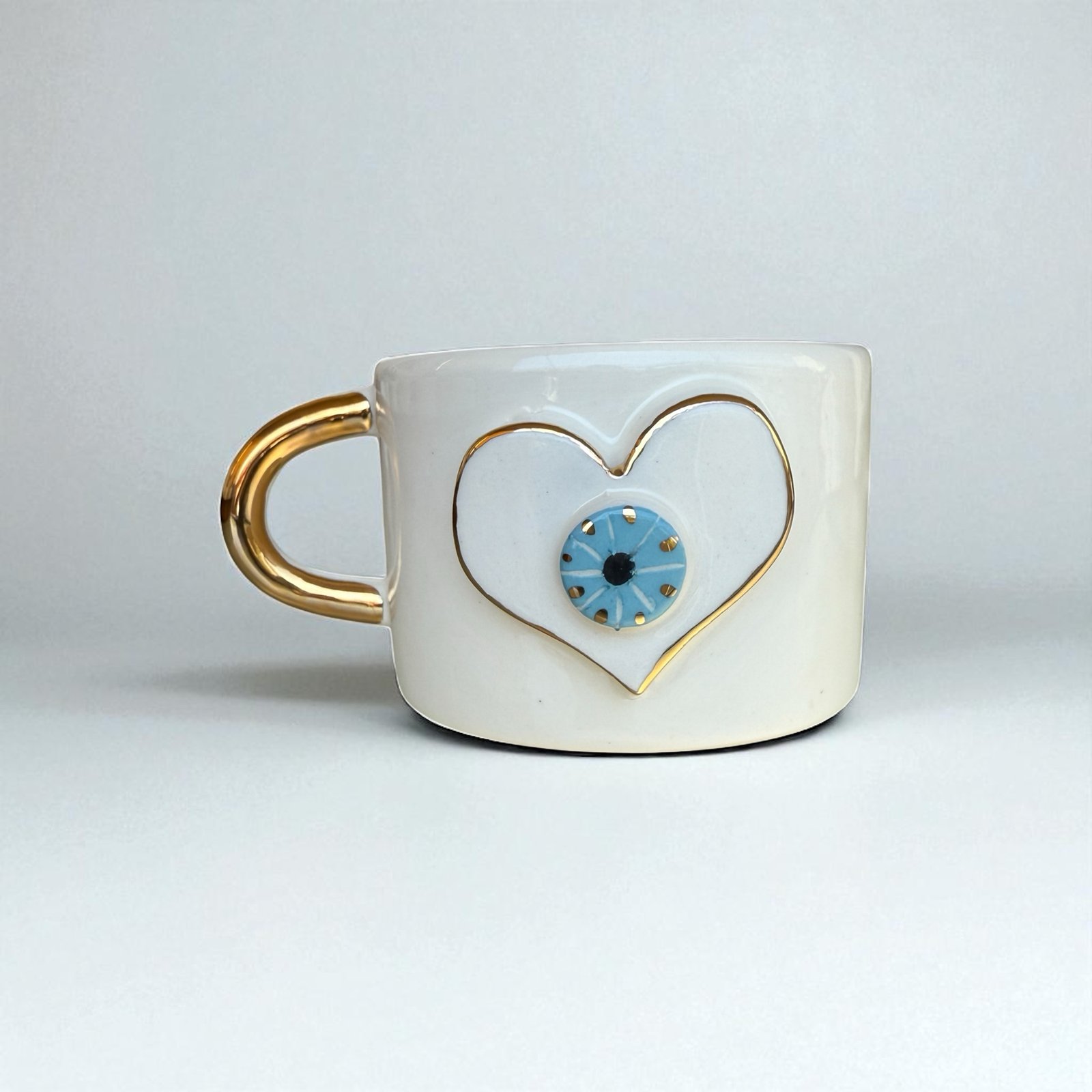 Handmade 3D Evil Eye Ceramic Mug / Tea Cup- The Heart’s Eye