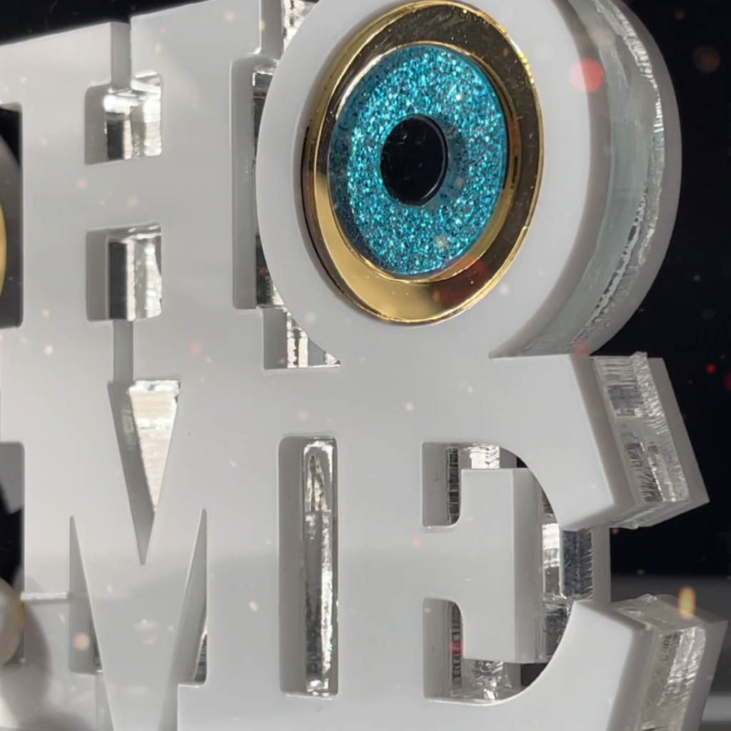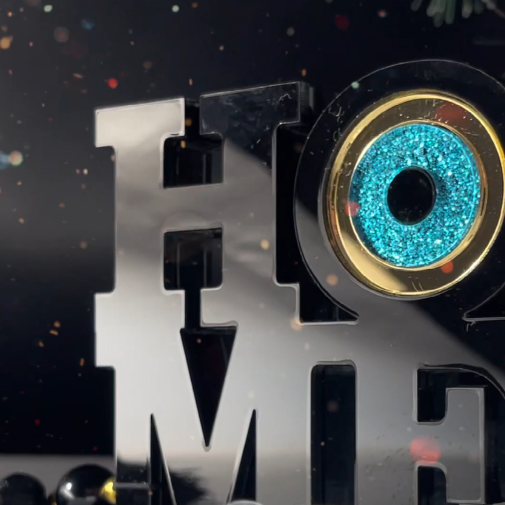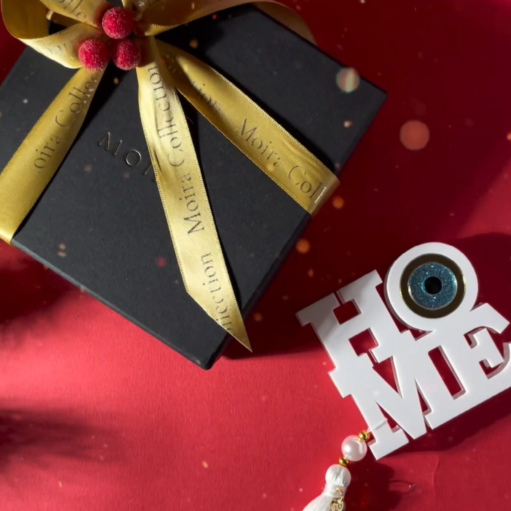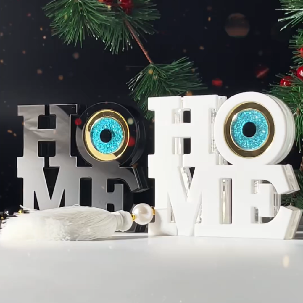 Enhance any space with our unique ‘Home’ Table Charm, crafted from black plexiglass and featuring a protective eye design with turquoise glitter and a white outline. This modern charm includes the symbolic ’25,’ making it perfect for the holiday season and New Year. A stylish and meaningful gift for loved ones, colleagues, or clients, it brings a contemporary touch and protective energy to any home or workspace. Comes in luxury gift packaging.