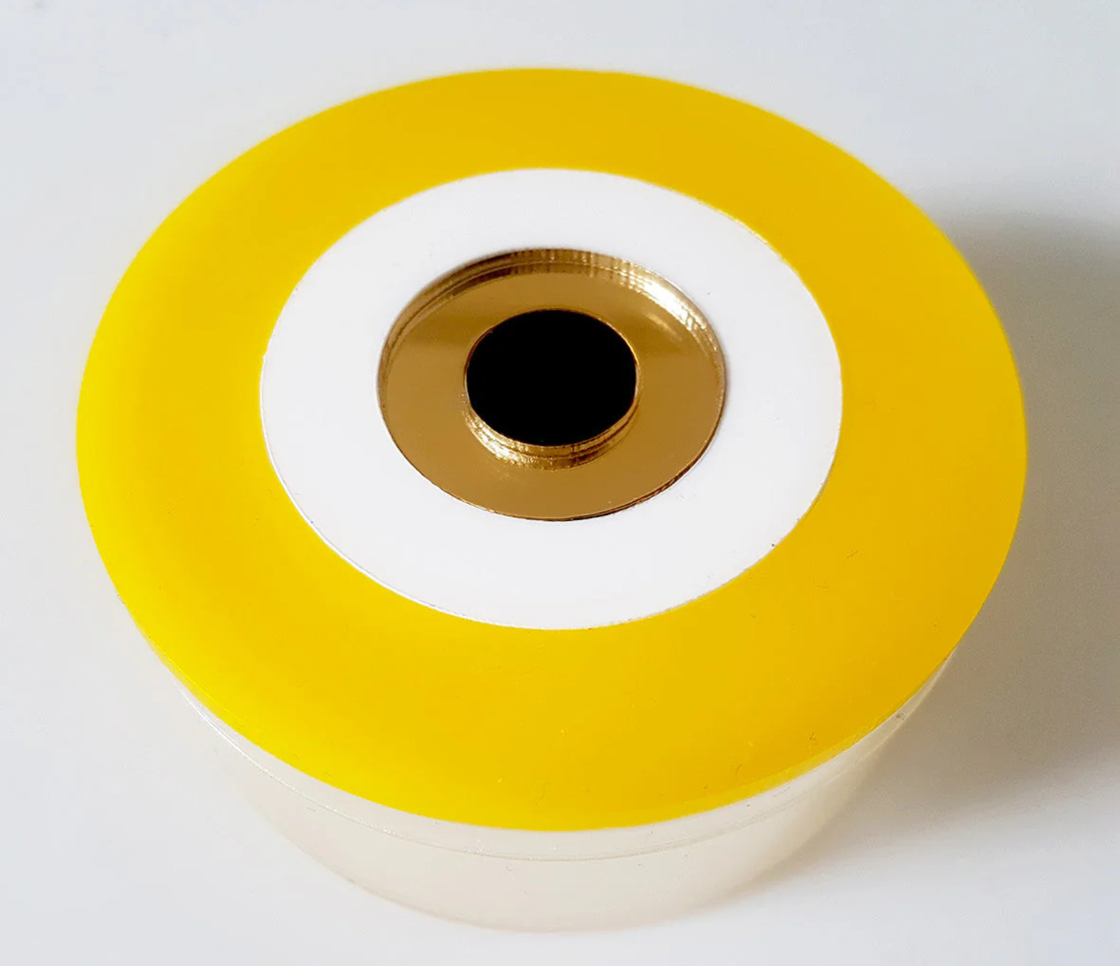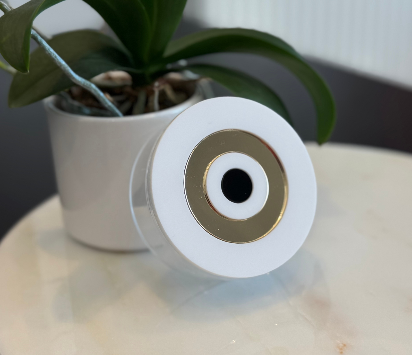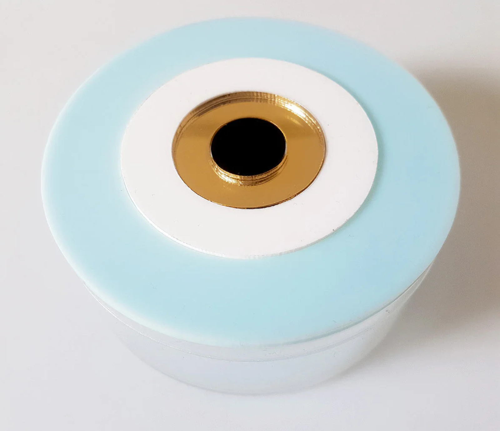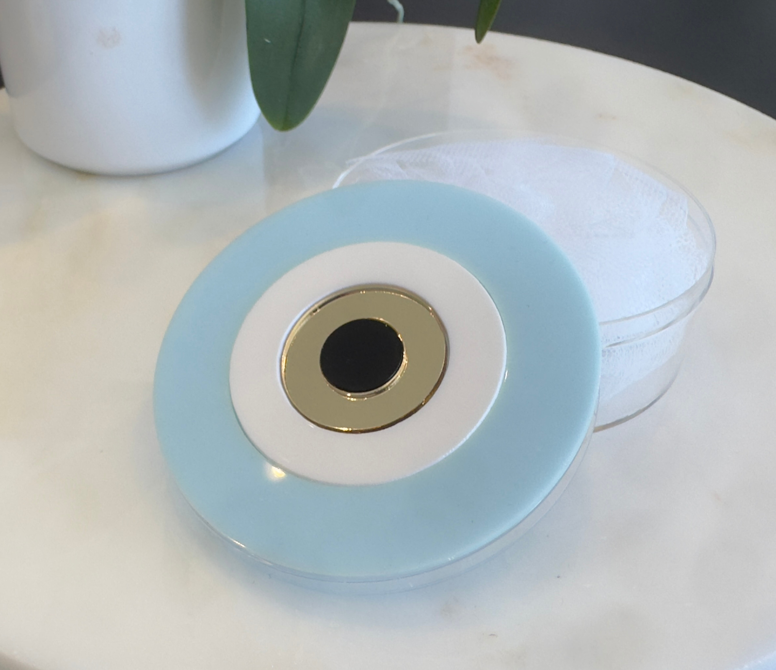 A handcrafted round plexiglass box, designed to combine elegance and practicality.